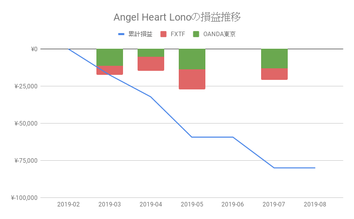| OANDA JAPAN(東京サーバ) | – | -21.68% | -43,351円 | 2019年3月4日 〜2019年7月12日 |